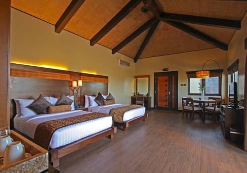 Situated the farthest on the highest part of the resort, these bungalows are perfect for families with kids or a group of friends. There are 2 queen-sized beds and a dining table suitable for 4 persons. The room size is 50m2 and there’s also a small balcony. Hilltop bungalows are not suitable for guests with disabilities because some units require more than 25 steps to reach.